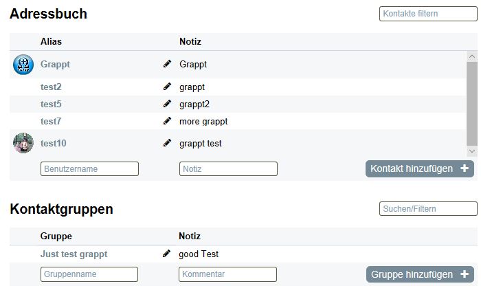 Bestimmen Sie zunächst in Kommunikation/Adressbuch einen Gruppennamen (auf Wunsch mit Notiz zur Gruppe). "Gruppe hinzufügen +"