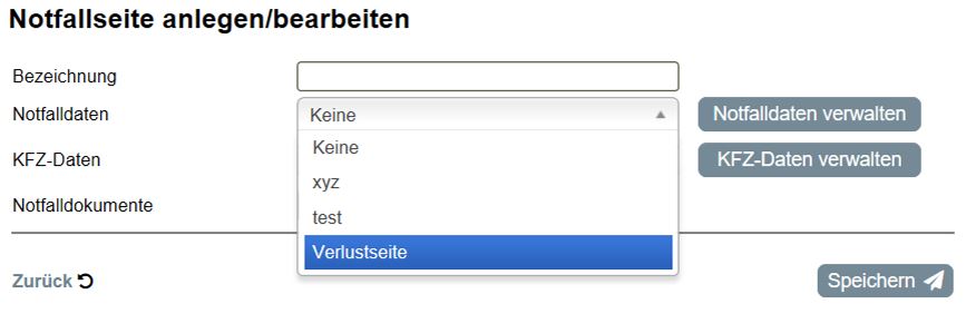 Unter „Notfallseiten bearbeiten/Neue Anlegen“ können sie nun "Ihre Notfallseite" zusammenstellen: